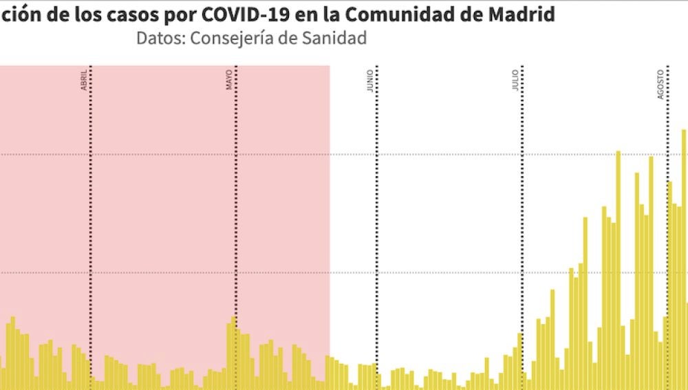 En agosto los casos de coronavirus comenzaron a aumentar en la Comunidad de Madrid situándose a 4.054 nuevos casos de coronavirus, el 21 de agosto, en tan solo 24 horas.