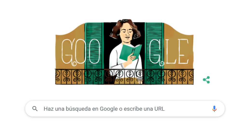 Si hoy abrimos Google desde España encontraremos a Carmen Laforet leyendo un libro en un balcón, persianas verdes, una barandilla negra y la escritora con una camiseta blanca, el Doodle es todo un homenaje a los 100 años del aniversario del nacimiento de Laforet.