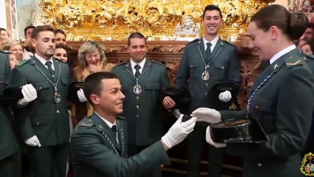La procesión de la Hermandad de la Resurrección y Amor de Linares (Jaén) había finalizado y dos agentes de la Guardia Civil sorprendieron a los allí presentes al comprometerse en el interior de la parroquia de Santa Bárbara.