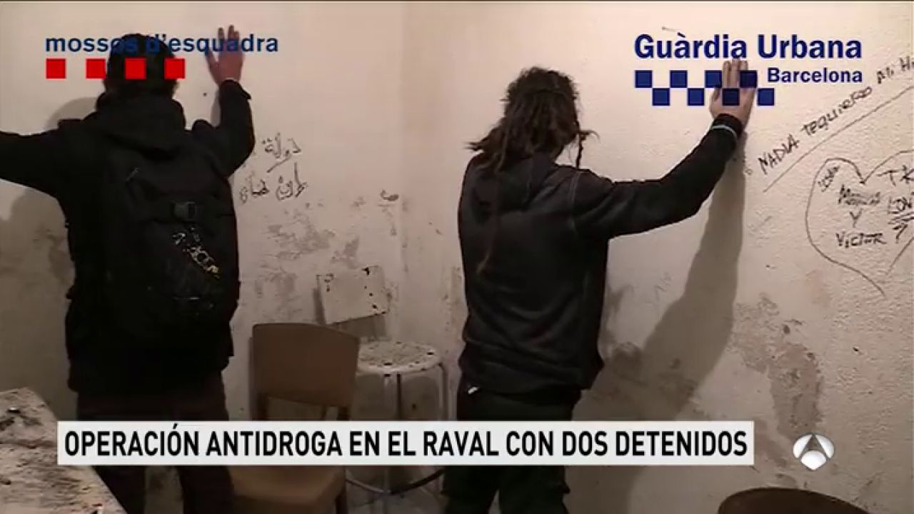 La Guardia Urbana ha detenido este lunes a dos personas y ha intervenido varias dosis de heroína y dinero en efectivo en una operación antidroga en un piso de la calle del Carme, en el barrio del Raval de Barcelona.