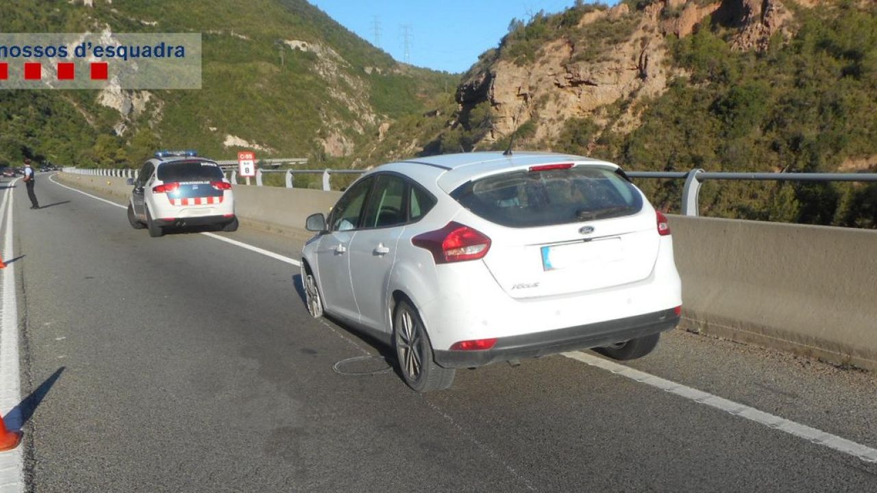 Los hechos ocurrieron a las 6:40 horas del pasado viernes, 30 de junio, cuando un ciudadano observó un vehículo circulando por el tercer carril de la A-2 a la altura de Cornellà, sin el neumático delantero izquierdo, con la llanta tocando el pavimento y echando chispas. Aunque el mismo ciudadano intentó detener el vehículo haciendo indicaciones al conductor, éste hizo caso omiso, por lo que llamó al teléfono de emergencias 112 alertando de la situación de peligro que suponía que circulara el vehículo sin neumático delantero.