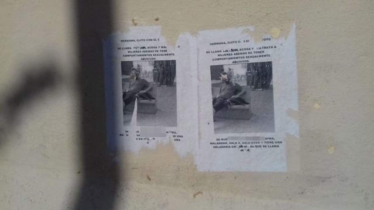 Un barrio de Sevilla apareció empapelado a principios de este mes con carteles se acusaba a un hombre de maltratar y abusar a mujeres. "Hermana, ojito con el de la foto" reza el encabezado del póster en el que se advierte que el varón "acosa y maltrata a mujeres además de tener comportamientos sexualmente abusivo". Justo debajo de este aviso aparece una fotografía del señalado en el que se le puede identificar perfectamente. Además, en el texto se señala su nombre y se indica los bares que frecuenta y hasta su lugar de trabajo.