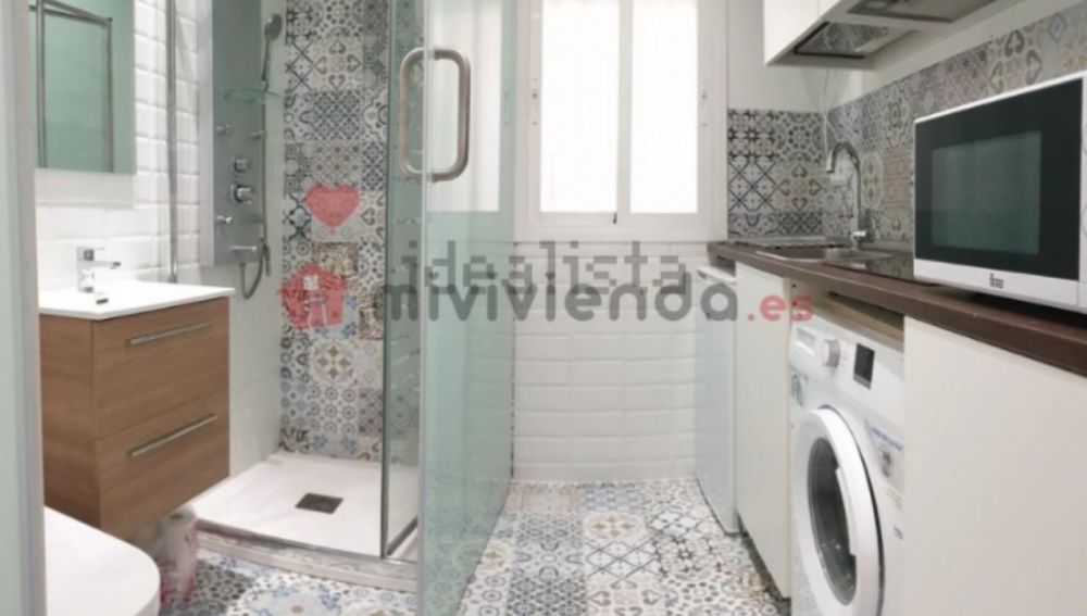 Lo que sí puede resultar más incómodo es el hecho de que tanto la ducha, como el lavabo y el váter, es decir, todo el baño, estén incrustados dentro de la cocina, a apenas un metro de la encimera, la nevera y la lavadora.