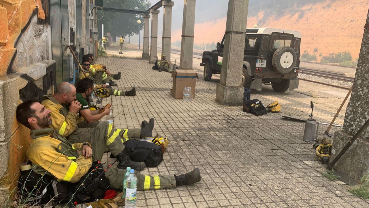 La imagen fue tomada en una estación de tren de Zamora y difundidas por la cuenta de Twitter @brifpuertopico. En ella se puede ver a una serie de bomberos apoyados en la pared de la estación de tren, aparentemente exhaustos tras apagar un incendio en uno de los bosques a las afueras del sitio, en Sierra de la Culebra, tal y como se puede apreciar en las otras fotos publicadas.