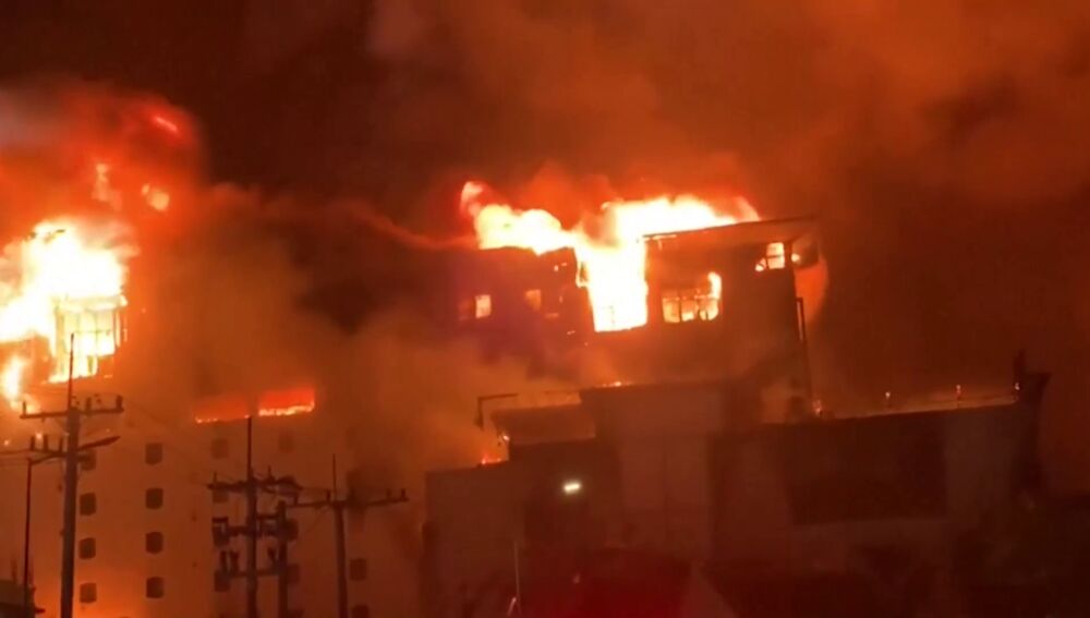 Tejado de madera que arde rápidamente