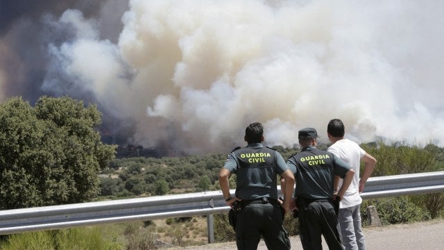 El operativo de extinción se ha completado con la actuación de una decena de helicópteros, cuatro aviones, ocho vehículos autobombas y seis retenes de maquinaria. También ha intervenido la Guardia Civil, que se ha encargado de impedir la circulación de vehículos por la N-122 debido tanto a la cercanía de las llamas como principalmente a la presencia de humo que impide la visibilidad. De hecho, la columna de humo era visible a primera hora de la tarde desde la capital zamorana, situada a cuarenta kilómetros de Pino del Oro, la localidad de los Arribes del Duero en la que ha comenzado el incendio. El fuego ha recordado a los vecinos del entorno a otro gran incendio que se produjo hace ahora cuatro años y que calcinó cerca de 2.500 hectáreas, aunque en esta ocasión aún no hay cifras de superficie afectada y por el momento se desconoce también el origen del fuego.