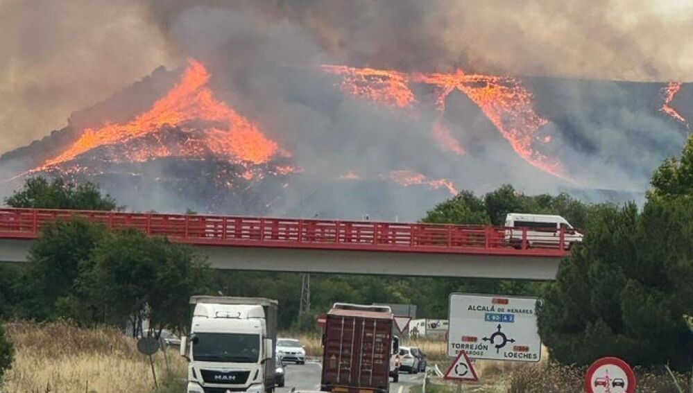 El fuego también se muestra perfectamente visible desde las carreteras M-300 y M-203. Se desconocen más circunstancias del incendio, que ha comenzado sobre las 15 horas de este miércoles.