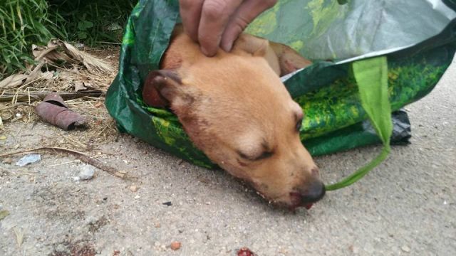 La perrita fue ingresada, sedada y metida en una incubadora con un pronóstico grave debido a una fuerte contusión craneal además de una costilla rota. Estaba tan grave que en ese momento no se sabía si sobreviviría el cachorro que apenas tiene tres meses.