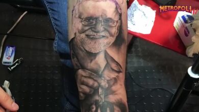 Se ha hecho el tatuaje durante el festival Metrópoli, celebrado el pasado fin de semana en Gijón. Se llama René Naredo y, tras cinco horas tatuándose, el rostro del expresidente de Gobierno ocupa todo su antebrazo.