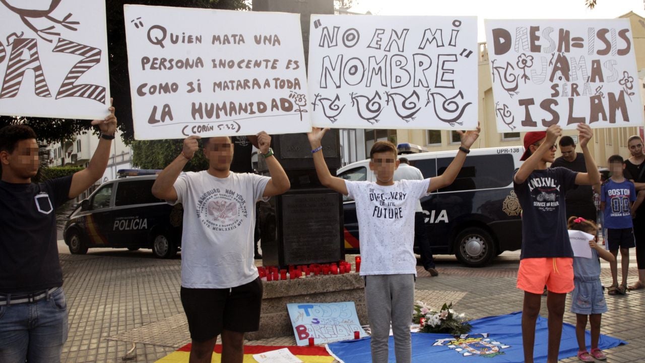 Decenas de melillenses se ha concentrado este martes en Melilla, en una protesta convocada por jóvenesmusulmanesespañoles, para decir que el Daesh no es la religión del Islam y para gritara los terroristas de Barcelona 'No en mi nombre'.