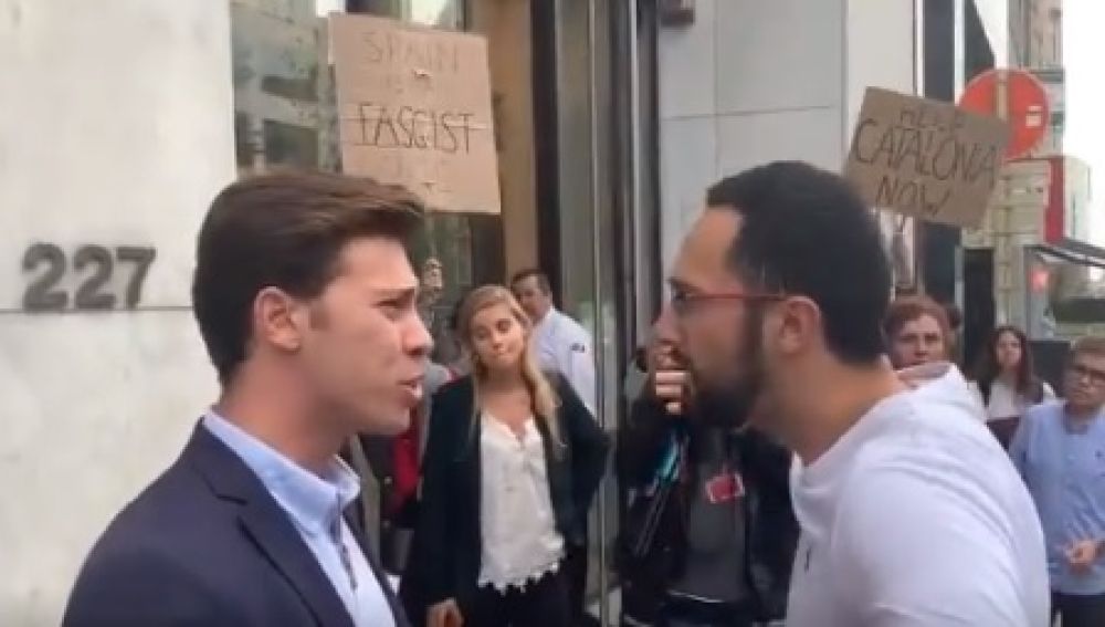 El líder de Vox en Girona se salió con la suya, ya que consiguió que el rapero abandonara el lugar en el que pretendía reunirse con los medios de comunicación al grito de "métete la bandera por el culo".