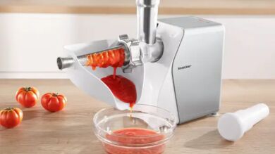 También tiene un pulsador desbloqueador para poder cambiar los accesorios. Además la picadora de carne de Silvercrest es higiénica y fácil de limpiar. Viene con un práctico enrollacable y patas con ventosas para una posición segura, en ella se puede cocinar hasta 1 kg de carne al minuto, además este utensilio tiene una función turbo que le ayudará a ir más rápido si cabe.