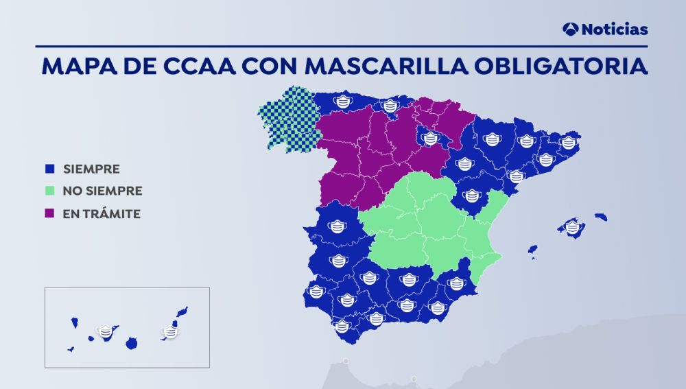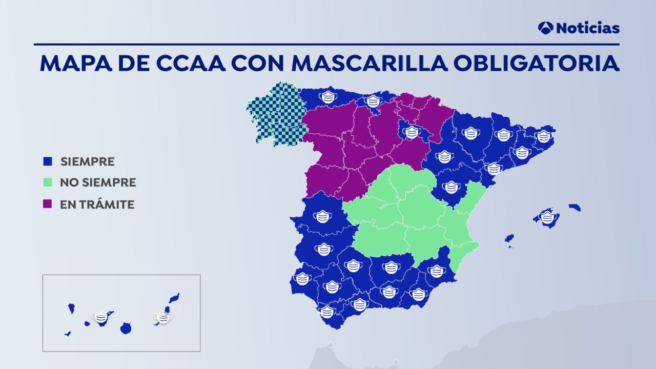 Casi todas las autonomías han impuesto la utilización de las mascarillas aunque se pueda mantener la distancia social. No obstante, Madrid, Castilla-La Mancha y la Comunidad Valenciana no han aplicado dicha norma hasta el momento.
