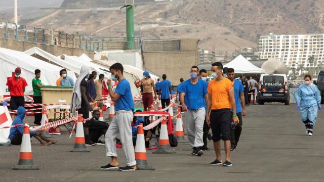 Sólo durante este fin de semana han llegado a Canarias 200 inmigrantes y la situación en el archipiélago comienza a ser crítica. En un campamento levantado en el muelle de Arguineguín, en Gran Canaria, permanecen 332 inmigrantes ante la falta de infraestructuras donde ser acogidos. 18 de ellos se han fugado y solo han localizado a 10.