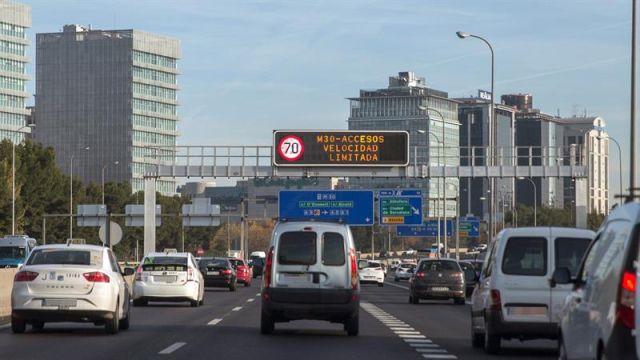 El Ayuntamiento de Madrid ha activado el Protocolo de actuación para episodios de contaminación por dióxido de nitrógeno, con lo que se limitará, a partir de las 06.00 horas de mañana, a 70 kilómetros por hora la velocidad de circulación en la M-30 y en las vías de acceso en el interior de la M-40.