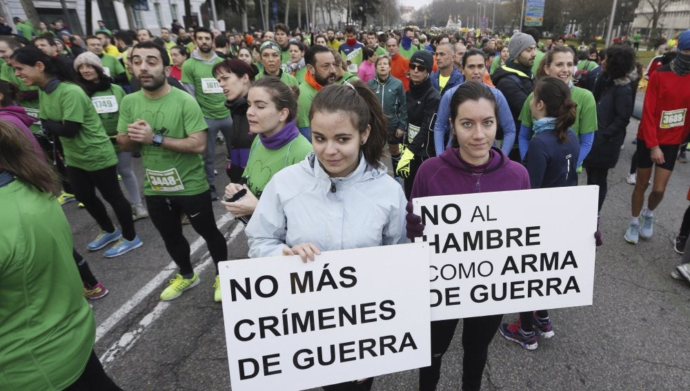 Más de 3.700 corredores se han citado este domingo en el Paseo de la Castellana de Madrid para denunciar las violaciones de derechos humanos que se cometen en Siria, las dificultades que tiene la población civil para acceder a la ayuda humanitaria, y la terrible situación de aquellas personas que decidieron dejar el país para huir de la guerra, ha informado Amnistía Internacional en un comunicado.