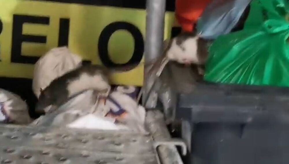 Varias ratas deambulan tranquilamente sobre un contenedor de basura en pleno centro de la capital