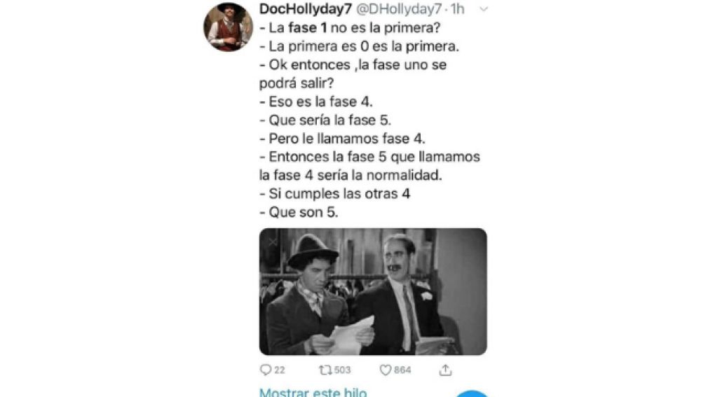 Las fases de la desescalada, qué se podrá hacer o qué no, las normas para que reabran de bares...son tantos los factores a tener en cuenta que habrá que memorizar bien cada nuevo avance. Consulta a continuación los mejores memes sobre las fases de desescalada del coronavirus en España.