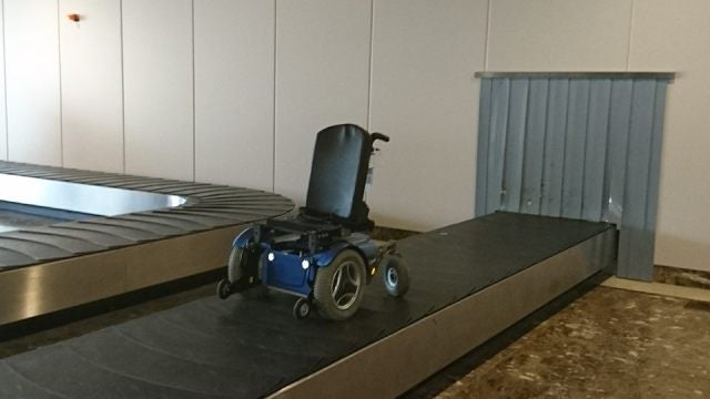 El Aeropuerto de Asturias se ha negado a facilitarle la silla de ruedas en la zona de llegadas de la terminal y le ha obligado a recogerla en la cinta de equipaje.