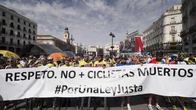 Los participantes han mostrado pancartas con lemas como 'Respeta al ciclista', 'Basta ya', 'No + muertos ciclistas' y '#PorUnaLeyJusta', junto a señales que instan a mantener una separación entre automóvil y bicicleta de 1,5 metros.