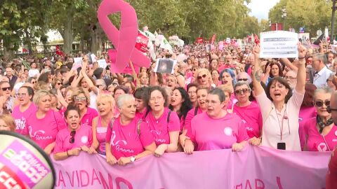 Con globos rosas, pancartas y hasta con un ataúd, miles de personas, en su mayoría mujeres, se han concentrado este domingo en una manifestación en Sevilla ,para protestar por los fallos en el sistema de cribados del cáncer de mama en Andalucía.