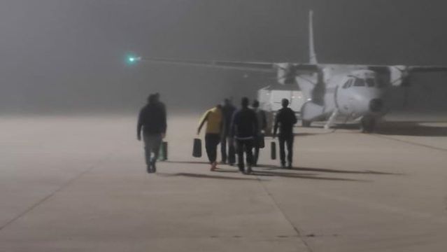 Los ocho mineros que han participado en el rescate del pequeño Julentomaron en Málaga un avión fletado por el Ministerio de Defensa y llegaron al aeropuerto de Asturias por la noche.