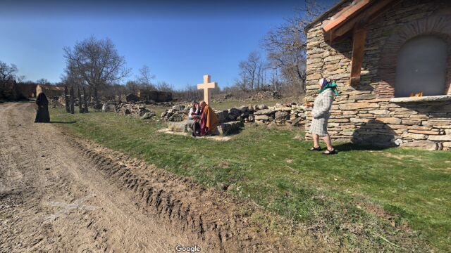 Una mujer vestida de negro, el cura hablando o una persona custodiando unos botijos son algunas de las imágenes que se ven en Google Maps de un pueblo abandonado.