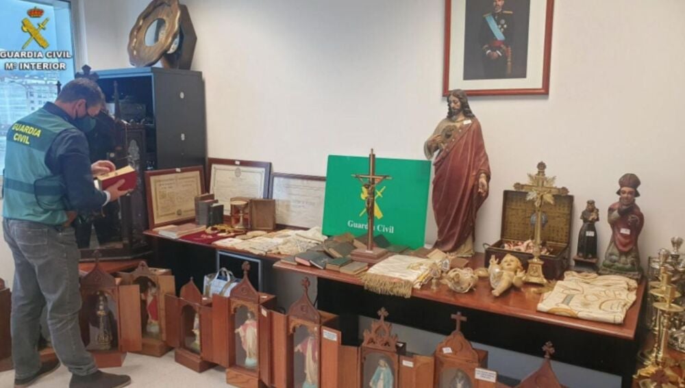 La jueza considera que el hombre aprovechó el período en el que el cura estuvo hospitalizado para llevarse a su casa y a la de su madre numerosos enseres litúrgicos, así como documentos que eran propiedad de la parroquia. En los registros efectuados en las viviendas de ambos, los agentes de la Guardia Civil hallaron pergaminos del siglo XIX, tallas e imágenes de santos, documentos relacionados con asociaciones y agrupaciones eclesiásticas, libros litúrgicos, ropa, un anillo, candelabros, un reloj y hasta una cruz del altar.
