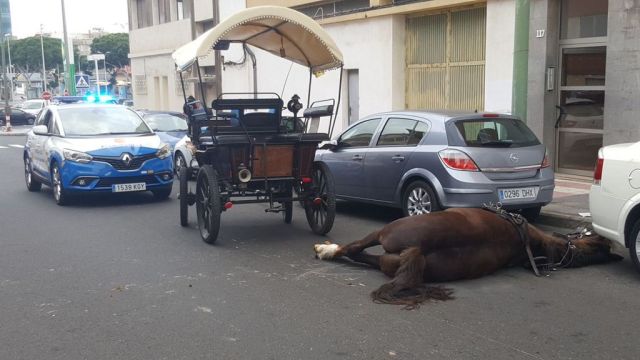 Muere un caballo en Las Palmas mientras estaba prestando servicio de tartanas