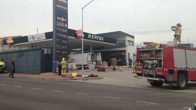 Ambos han quedado dentro del depósito y los Bomberos de la Generalitat los están rescatando con equipos del cuerpo especializado GRAE, que han llegado a la gasolinera en un helicóptero.
