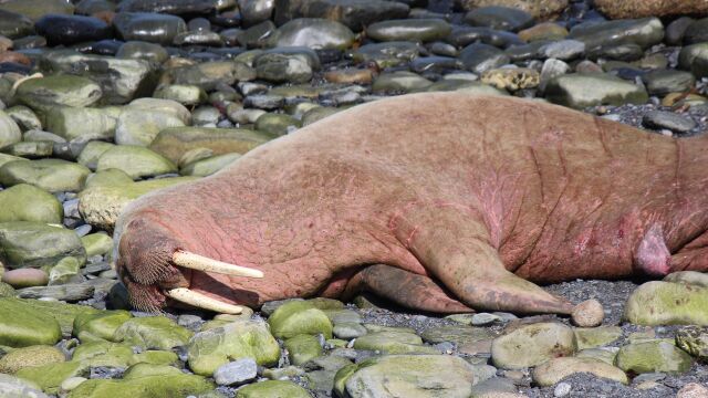Las morsas, una especie protegida que se alimenta sobre todo de invertebrados como moluscos, gambas, cangrejos y pequeños peces, viven normalmente en latitudes más al norte, en el Ártico. Además, Las siestas de estos animales marinos pueden durar hasta un total de 20 horas al día, repartidas en dos turnos de sueño.