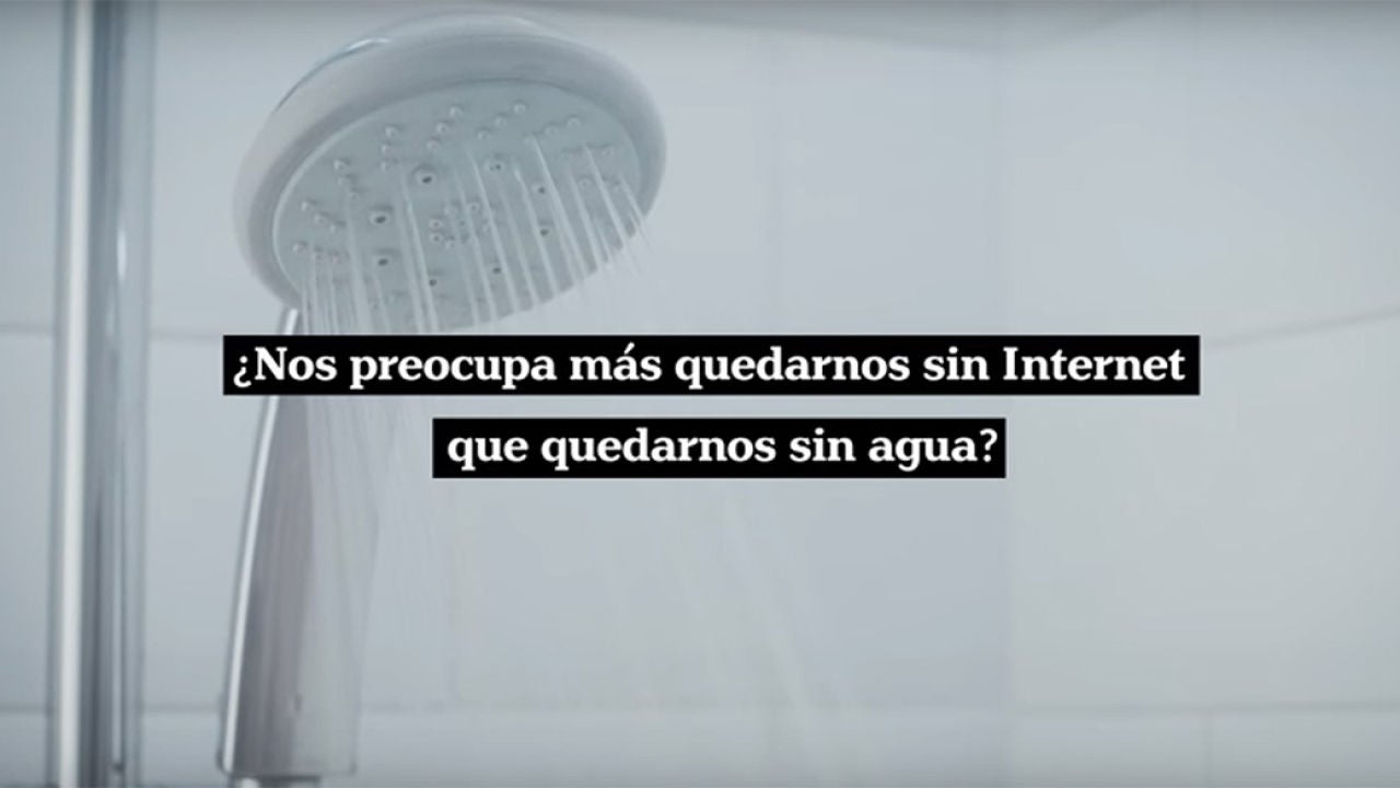 Por ello, la campaña pretende despertar la conciencia de que ahorrar agua es tarea de todos. Los 'spot' publicitarios muestran a un grifo y una ducha abiertos que 'aparentemente' se quedan colgados y que inmediatamente muestran el lema: '¿Nos preocupa más quedarnos sin internet que quedarnos sin agua? Internet no se acaba, el agua sí'.