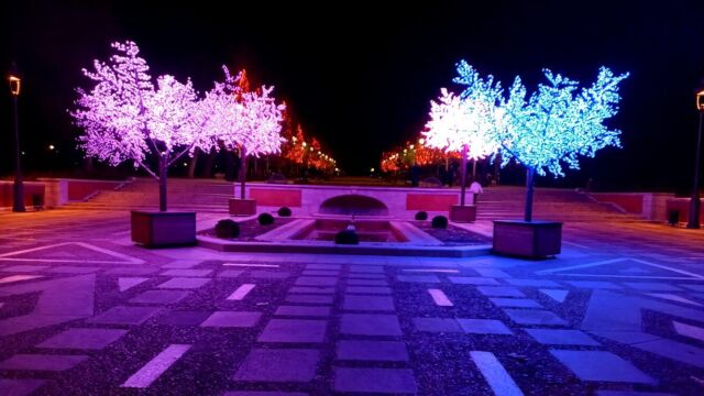 Los árboles presentes en la entrada, así como gran parte del amplio recinto, albergan luces a todo color que permanecen encendidas hasta ya entrada la madrugada, si bien se prevé que para días especiales como Navidad, Año Nuevo o Noche de Reyes, permanezcan activas durante toda la noche, al tratarse de las fechas más especiales de la Navidad.