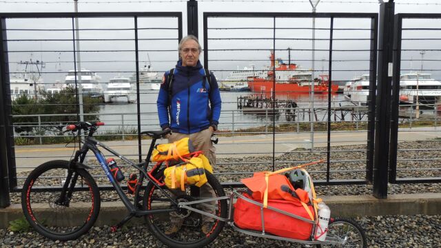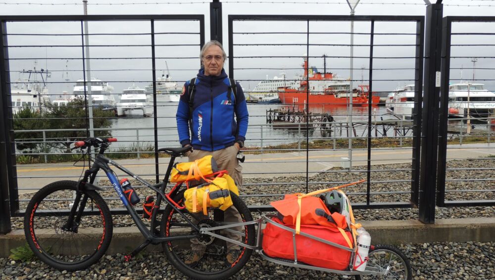 A los pies del cruceiro levantado en la plaza de Galicia de Ushuaia, el bicigrino ourensano reconocía, antes de iniciar la marcha, encontrarse "cargado de ilusión y con buena onda, como dicen aquí. También con algunas incertidumbres pero cualquier aventura también tiene que tenerlas. Si no, no sería aventura". El reto comienza con "frío y nieve en las montañas y con el deseo de cumplir este bonito proyecto, que pretende ser el cordón umbilical que va a unir América con Galicia y Europa a través del Camino de Santiago".