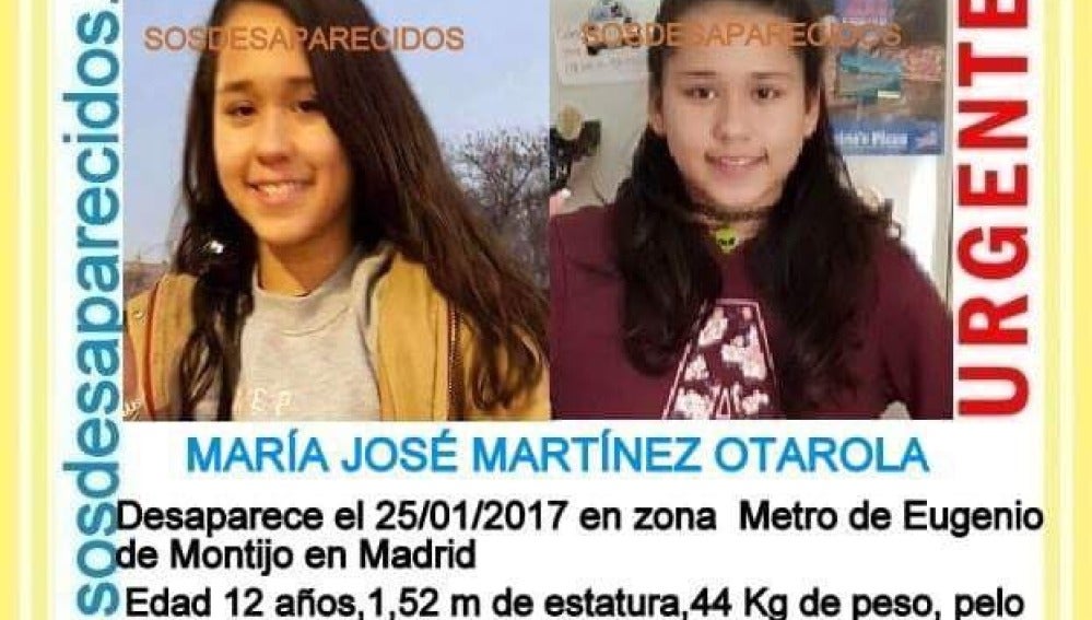 María José Martínez, una menor de 12 años, fue vista por última vez el miércoles en la zona del metro de La Gavia, en Madrid.