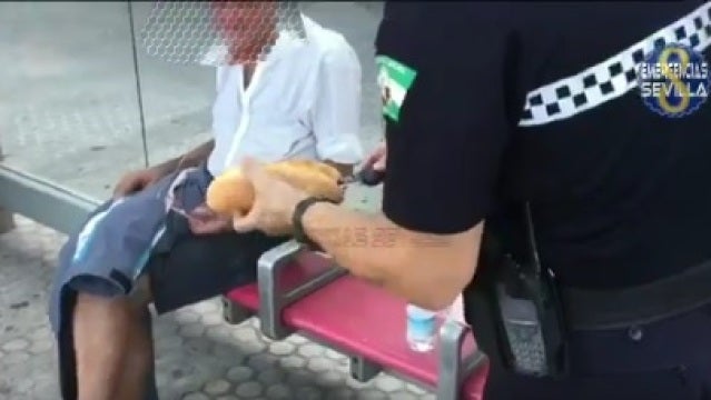En el vídeo se ve cómo el agente le prepara un bocadillo "con pan calentito" ayudándose de su navaja. El gesto ha sorprendido y nos recuerda que aunque sea poca, toda ayuda con una persona que se encuentra en la calle es bienvenida. El hombre declinó asistencia sanitaria.