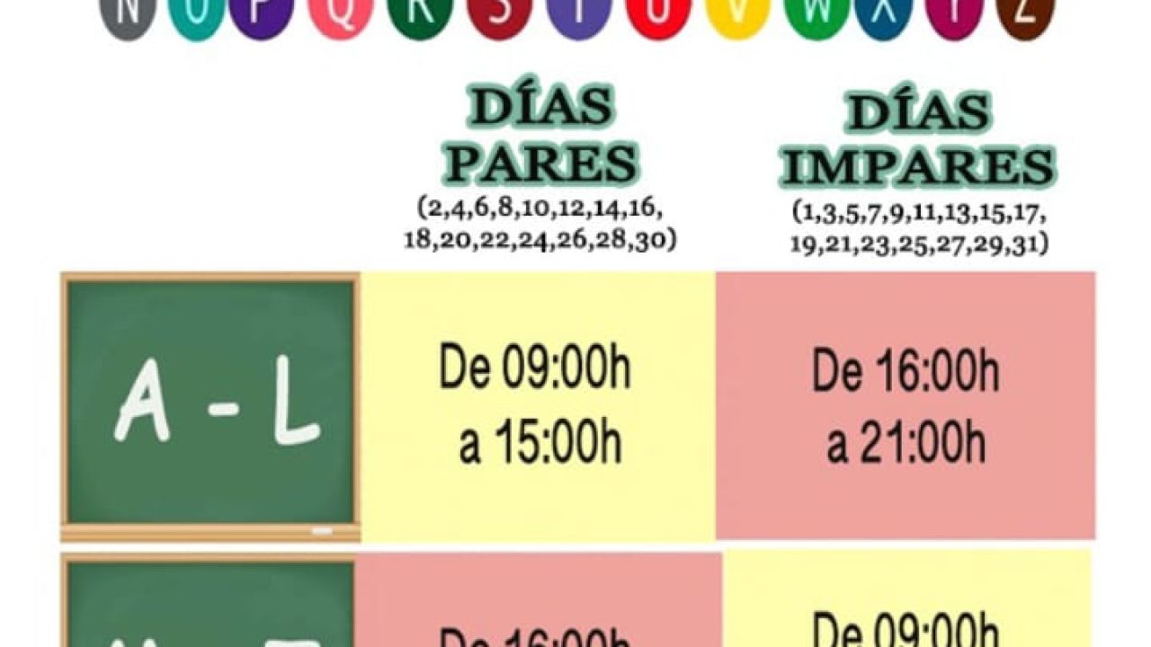 Los días pares saldrán a la calle entre las 09:15 y las 15:00 horas los menores cuyos apellidos comiencen con la letra A a la L; y entre los 16:00 y las 21:00 horas los pequeños con apellidos de la M a la Z, para evitar nuevos contagios de COVID-19.