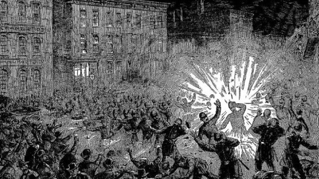 Ese día, un artefacto explosivo estalló en la plaza de Haymarket, matando a un policía. Las autoridades responsabilizaron del crimen a los trabajadores y más de 30 personas fueron detenidas por sus ideas radicales. Inicialmente siete fueron condenados a muerte, aunque finalmente tres de ellos fueron condenados a prisión y cinco a la horca.