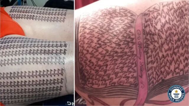 Después de este hecho, el británico quiso demostrar que nadie podía quitarle su lugar en los récord Guinness y ha vuelto al salón de tatuajes para multiplicar el nombre de su hija hasta alcanzar las casi 700 repeticiones. Tuvo que repartir los tatuajes por todo su cuerpo ya que se quedó sin espacio en la espalda, por lo que también puso sus piernas a disposición de este nuevo récord Guinness.