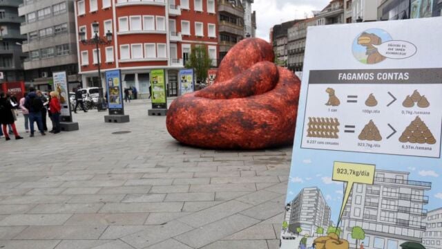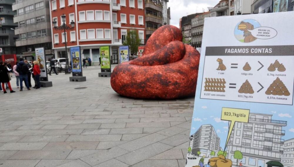 Un hinchable gigante con forma de excremento preside esta semana una de las principales plazas de la ciudad, la Plaza de Galicia. Las bromas no han tardado en llegar, hay quien se saca fotos y quien se queda mirando, pero desde luego nadie pasa de largo.