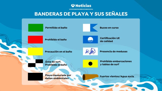 Las banderas suelen estar al pie del paseo de las playas o al lado del puesto de socorrista. El código de colores es clave, pero ¿sabes qué significan todas las que te puedes encontrar este verano al ir a la playa?