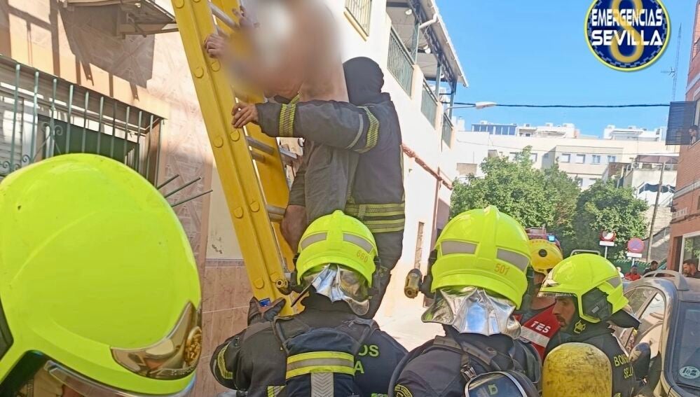 La mujer logró escapar del incendio gracias a la valiente acción de un grupo de vecinos que rompieron las rejas de la planta baja, permitiéndole salir antes de que las llamas se propagaran. Por otro lado, el hombre se encontraba atrapado en la primera planta. Los bomberos, forzaron una reja para acceder al interior y rescatarlo. Durante el rescate, le proporcionaron aire mediante su equipo de respiración, lo que ayudó a estabilizarlo antes de trasladarlo a una zona segura.