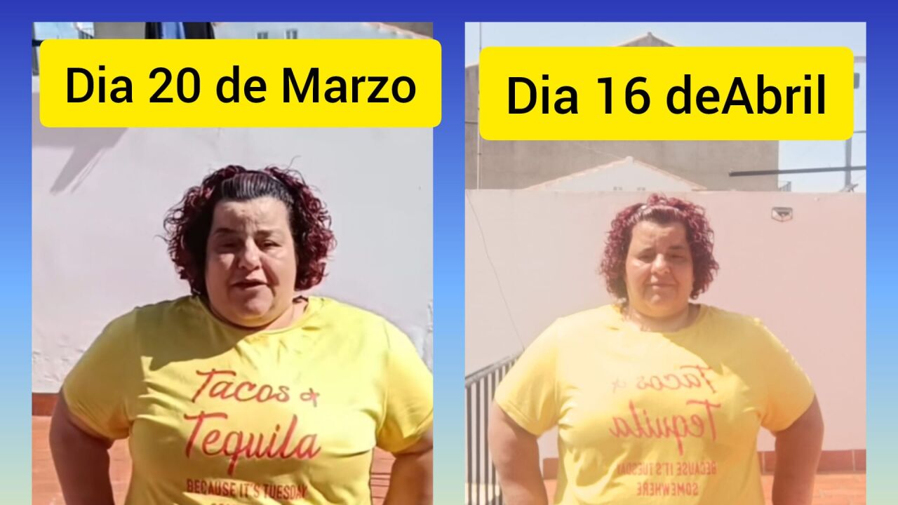 Esta onubense de El Granado tiene 43 años y pesaba 145 kilos. Su reto personal es llegar a los 65 kilos, "mi objetivo es llegar a las dos cifras. Si puedo bajar a 65/70 kilos estaría genial. Sería una persona completamente feliz y podría decir orgullosa: ¡yo lo conseguí!".