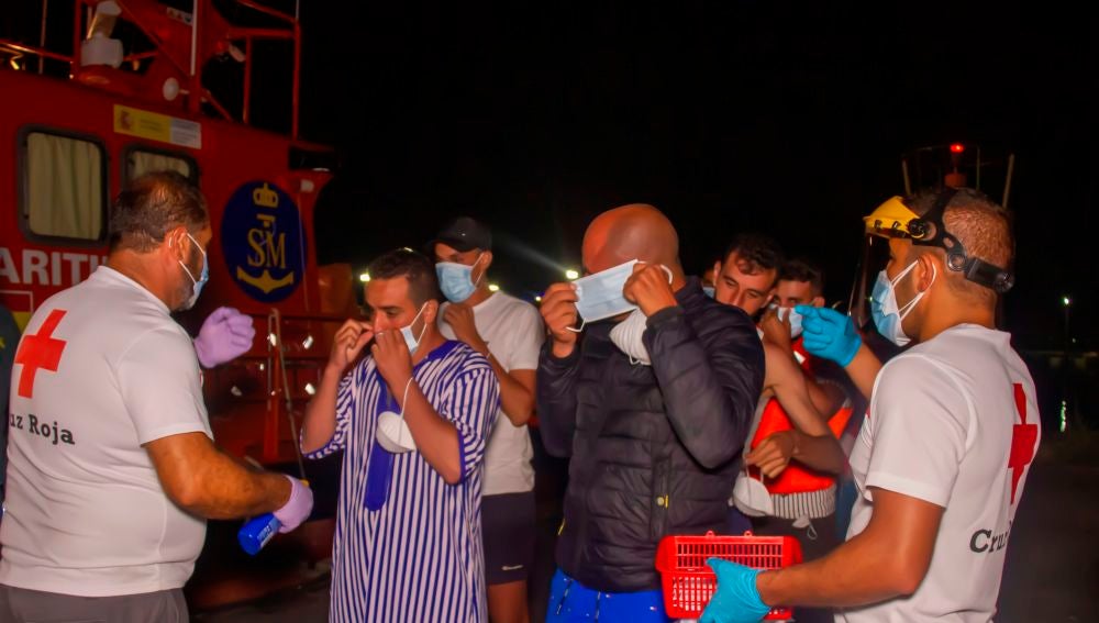 Los ocupantes, ochopersonas, se encuentran en buen estado de salud. CruzRojales ha dispensado una primera atención médica y alimenticia al llegar a la dársena en el puerto.