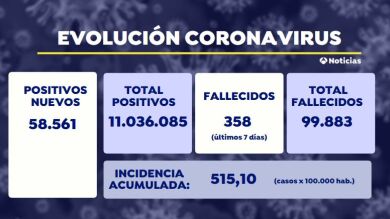 Además, la incidencia acumulada (IA) a 14 días ha descendido hasta los 515 positivos por cada 100.000 habitantes, siguiendo así con el descenso que comenzó hace ya varias semanas. Galicia y Canarias son las dos comunidades autónomas con la IA más elevada: 825 la primera y y 780 la segunda.