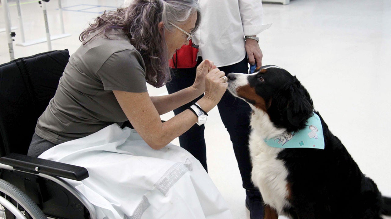 Solo se ven una hora a la semana pero la relación afectivo-emocional entre pacientes con una dolencia oncológica, psiquiátrica o una lesión medular ingresados en un hospital y perros de asistencia llega a ser tan intensa y placentera que les permite "desconectar" y hacer "menos penosa" la estancia.