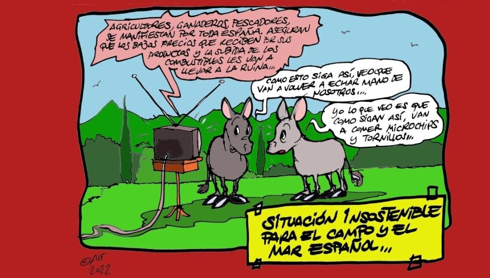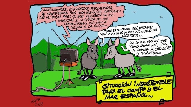 La situación "insostenible" que vive el mundo rural, los agricultores y ganaderos con la subida del precio de la gasolina, en la viñeta gráfica de Alfredo Boto-Hervás.