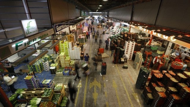 El hombre estaba en una puerta de las naves de la zona de carne cuando, por causas que ahora se investigan, ha quedado atrapado en el útil de carga del camión. Para rescatarlo ha acudido un camión de bomberos del Ayuntamiento.