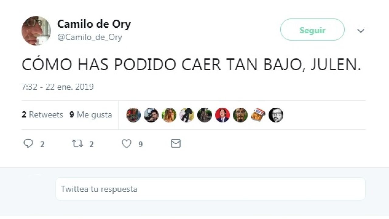 "Cómo has podido caer tan bajo, Julen" o "Lo único bueno del caso de Julen ha sido ver a tanta gente de VOX partirse la cara por un niño gitano de nombre vasco" son algunas de las publicaciones por las que Camilo de Ory fue denunciado.