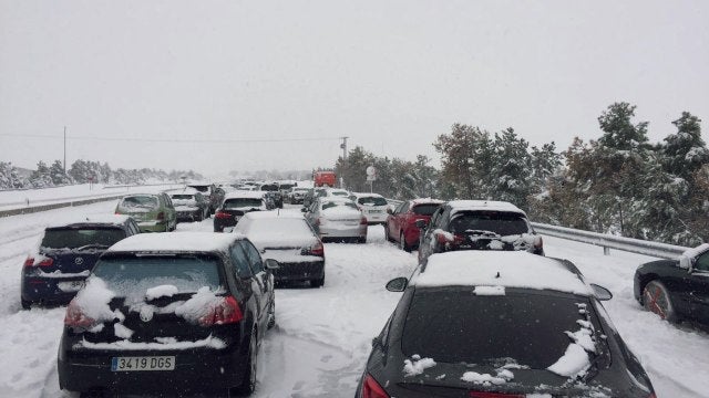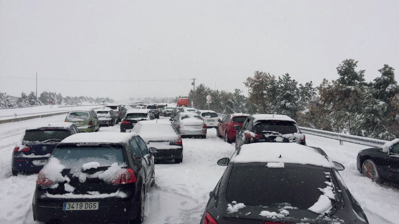 Familias atrapadas en sus coches por la nevada en la AP6 han pasado la noche en sus coches a la espera de que las máquinas quitanieve puedan desbloquear las vías, en las que permanecen atascados desde la tarde de de este sábado.